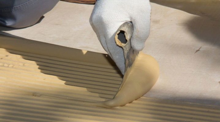 Преди да нанесете лепилото върху основата или структурния елемент, първо трябва да го почистите, обезмаслете и изсушите. Не забравяйте да използвате ръкавици, за да защитите ръцете си. Частиците от материала се отстраняват с ацетон. Това се прави, докато продуктът изсъхне напълно, в противен случай почистването ще трябва да се извърши механично.