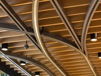 Рафтовите тавани са една от най -сложните структури по отношение на възприятието. Всъщност това са системи от рамка и тесни ламели, свързани помежду си. За неговия дизайн се използват ламели от алуминиева сплав, стомана и пластмаса. Те имат високо ниво на устойчивост на корозия, поради което такива тавани могат да се монтират в бани, тоалетни и кухни.