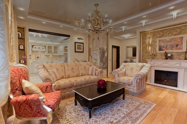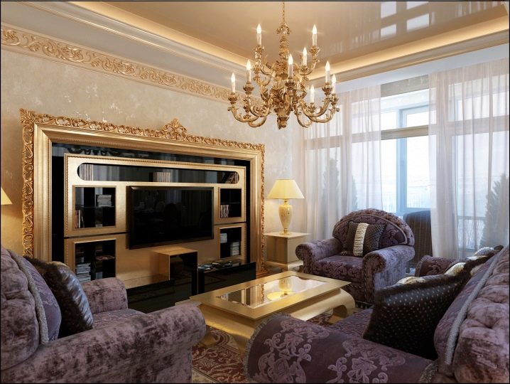 Не претоварвайте тавана с голяма рисунка: важно е да покажете лукса чрез детайлите на мебелите.