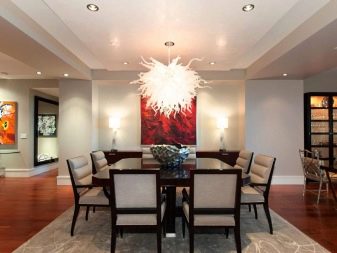 - Опитайте се да изберете дизайна така, че да съответства на осветителните тела. Полилеят не винаги изглежда красив на фона на асиметричен модел..