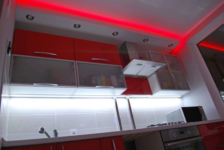Кабелът и лентата са забележителни с това, че могат да бъдат вградени в окачени конструкции преди и след основния им монтаж. Например, ако се планира вътрешно осветление, вграждането на LED лентата се обмисля на етапа на проектиране. Така таванът ще изглежда триизмерен и реалистичен. Ако инсталацията вече е извършена, но искате елегантност, можете да скриете лентата зад корниз или франзела. Това ще създаде илюзията за „плаващ“ таван..