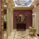 Гипсокартонът може да бъде покрит с тапет: стилът не толерира демонстрацията на съвременни материали. Скритото осветление обаче ще бъде добро дизайнерско решение..