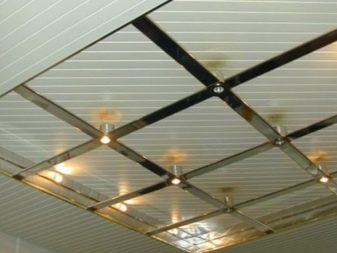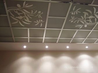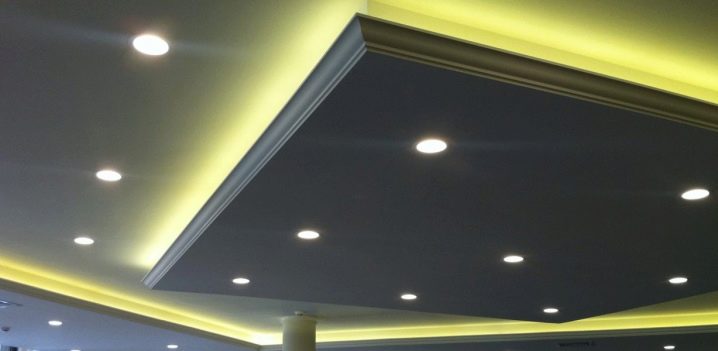 За да избегнат това, дизайнерите измислиха вградено осветление под формата на прожектори, както и петна с възможност за регулиране на ъгъла на наклон на светлината. Инсталирани на редовни интервали по периметъра, те могат да компенсират изцяло централното осветление. Поради това дизайнът на окачен таван често е напълно завършен без полилеи..