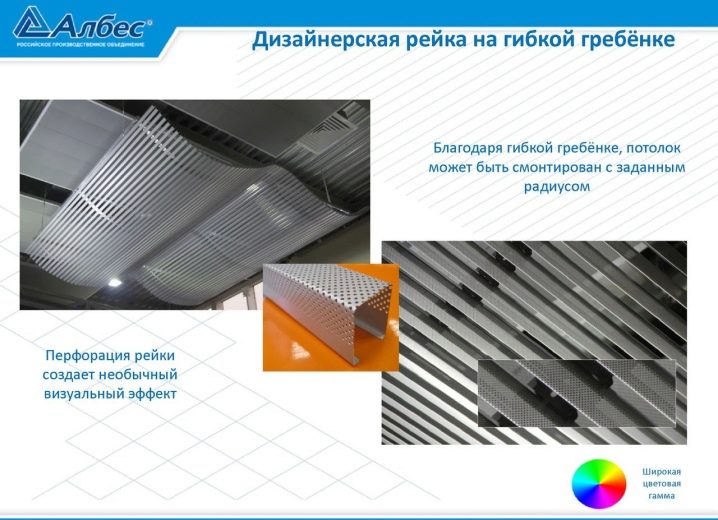 Албес – стелажни системи, изработени от тесни стоманени и алуминиеви панели, покрити с полимерен слой. Проектиран за довършване на кухни, коридори и бани, подходящ за довършване на тавани в помещения с висока влажност. Те се отличават с хигиена, разнообразие от цветове и издръжливост.