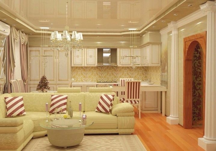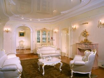 - Те имат много разновидности. Богат списък от дизайни за всеки вкус ще бъде отворен за вашето внимание. Можете да украсите тавана на стаите, като използвате лаконични или помпозни решения..