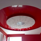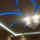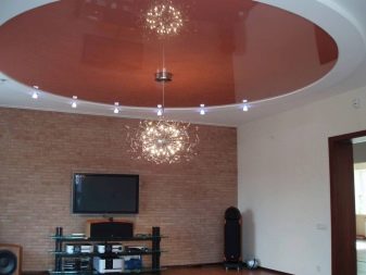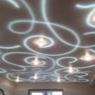 Вложките с опънат таван около полилея изглеждат красиви. Обикновено това са кръгли акценти с диаметър 2,5 – 3 м. Поради рамката под формата на елемент от гипсокартон, размерът им може да се увеличи в диаметър с 20 – 30 см. Понякога (със скосена перспектива на стените и тавана) , елементи под формата на остър триъгълник с връх при входната врата на коридора.
