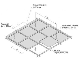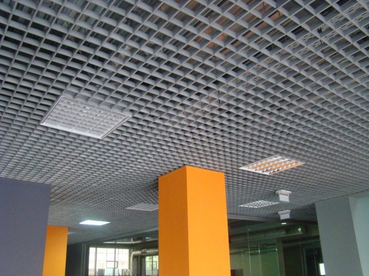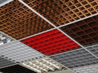 Такива схеми ви позволяват да поставите вентилационни и климатични системи. Основните видове клетъчни окачени конструкции са стандартни, пирамидални, щори. За да станат многостепенни, те се комбинират с друг материал за таван. При производството на такива продукти се използва алуминий с дебелина 0,3 – 0,4 мм. Размерите на клетките могат да бъдат 40×40, 50×50, 60×60, 75×75, 85×85, 100×100, 120×120, 150×150, 200×200 см. Такива тавани се характеризират с издръжливост, те са екологични, надеждни.