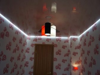 Често на тези места няма прозорци, затова е важно да се допълни конструкцията на окачването с маса малки лампи и бял материал. Сложните окачени конструкции на две или повече нива са нежелателни. Те са допустими само в случай на отворен план. По -често регистрацията се извършва с помощта на стреч фолио..