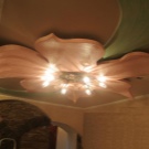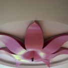 Параметрите на формите, използвани в дизайна, са подбрани по такъв начин, че да не се загубят на общия фон на тавана и заедно да съставят хармонична композиция. За да направите това, нарисувайте скица, след което детайлите се правят в пълен размер. Това могат да бъдат фигури на големи цветя, пеперуди, звезди, абстрактни детайли. За децата те изпълняват елементи във формата на слънце с лъчи. Размерите на такива елементи варират от 1,5 до 2 м и повече..
