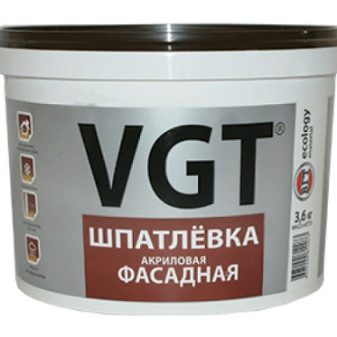 LLC “VGT Enterprise” произвежда готови фасадни акрилни композиции на марките Bau master Shelton и VGT. Универсалността на шпакловката позволява да се нанася върху различни видове повърхности със слой до 7 мм. Характеризира се с кратко време за втвърдяване от 8 часа. Предлага се в кофи от 3,6 кг, 7,5 кг и 18 кг и барабани от 50 кг.