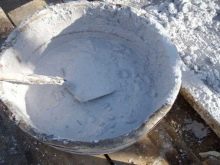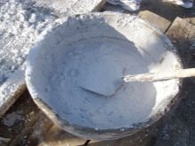 Така цялата процедура изглежда така: цимент и вар се поставят в определен обем вода, смесват се, добавя се пясък.