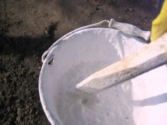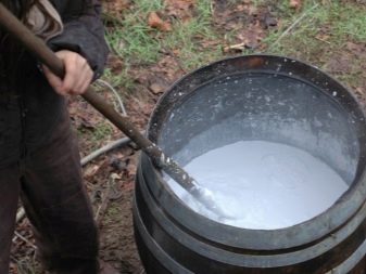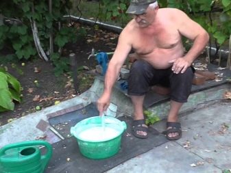- добавете 2 кг гасено месо, 1,5 кг глина и 0,3 кг меден сулфат в кофа с вода (8-10 л);