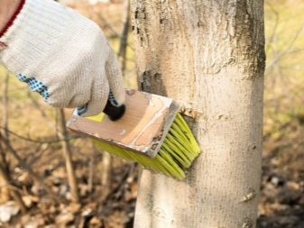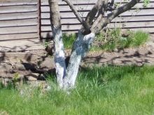 Необходимо е да се избелват дърветата през есента и пролетта, тази процедура ги предпазва от замръзване и вредители.