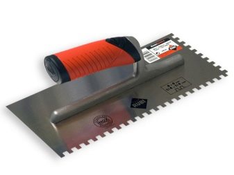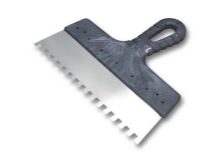 - За работа със синтетика или за нанасяне на лепило с височина на слоя над 12 мм е необходим инструмент с полукръгли зъби.