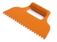 - 6×6 мм. Тази опция е идеалният избор за облицоване на повърхността с плочки 20×20 см. Инструмент с този размер зъби е подходящ и за облицовка на подове и стени. Може да се използва и за полагане на плочки 10х10 см, ако на гърба на декоративния материал има жлебове. При нанасяне на лепило с такава шпатула се изразходват 3 кг фугова смес на 1 м2.