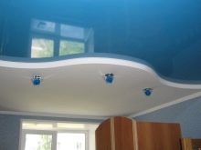 Най -популярният цвят в дизайна на тавани беше и остава бял. Белите лъскави опънати тавани изглеждат особено добре, което ще изглежда хармонично във всеки интериор. За любителите на креативни решения предлагаме да се запознаете с опциите за черни лъскави тавани, чиято огледална повърхност, заедно с прожекторите, е просто хипнотизираща.. Препоръчително е да подчертаете такъв таван с подходящи мебели или необичайни нюанси на спалното бельо..