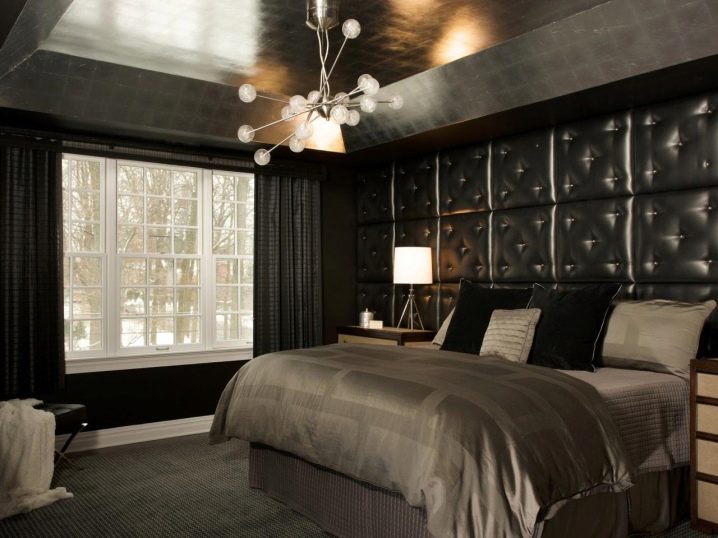 Тъмният таван в спалнята ще изглежда особено впечатляващ. А лъскавата повърхност ще направи тавана по -висок и ще му придаде дълбочина..