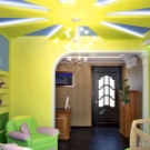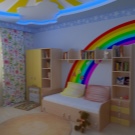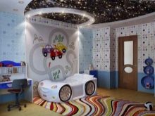За по -големи деца можете да използвате опънати тъкани с абстрактни шарки, геометрични линии. Гимназистите предпочитат строг, но лаконичен интериор, затова най -често избират едноцветни тавани. Ще бъде по -екологично да украсите тавана с дъска. Разбира се, можете просто да залепите интересни тапети на тавана, но този метод не може да се нарече практичен.. По -добре да изберете по -модерни и издръжливи опции.