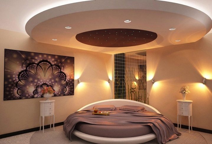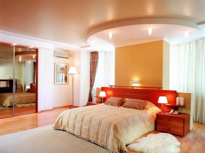 Многостепенните тавани трябва да се извършват само ако параметрите на помещението са достатъчно големи, за да побере окачените елементи. Но в малки спални с ниски тавани е по -добре да се направи структура в едно ниво, оградена от къдрава рамка. Гипсокартон – почти универсален материал: окачените тавани могат да бъдат не само с всякаква форма, но също така имат скосени ъгли или дори наклонени или наклонени, ако дизайнът го изисква.