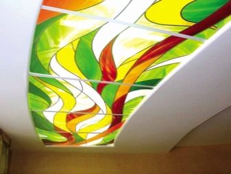Един от творческите начини да украсите таванско пространство е да инсталирате стъклен таван. Това е окачена рамка, върху която е прикрепен полупрозрачен акрил. Такъв таван е много издръжлив, не се страхува дори от небрежни удари. В комбинация с класически полилей, стъкленият таван ще изглежда невероятно. А полупрозрачните плочи, светещи от лампата, ще изпълнят стаята с приятно трептене..