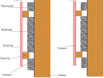 Ширината на стъпалото на стругата трябва да бъде малко по -малка от ширината на сайдинга. Изолацията се полага между елементите на рамката, тоест по своята ширина тя не се различава много от ширината на панелите. Изолацията се полага директно върху стената, ако се използва минерална вата и тя се разпространява върху дървена повърхност, обикновено между тях се полага слой от пароизолационен филм.