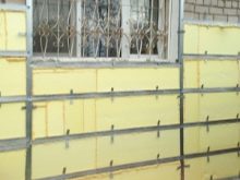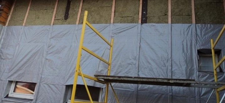 Задачата на този слой е да осигури пароизолация и защита от влага на изолацията, и в случай на използване на материали от минерална вата, ги предпазете от издухване. Филмът или мембраната се припокриват, всички шевове са залепени с лента. В случай на случайно увреждане на повърхността на филма, тези места също трябва да бъдат залепени. Следващата стъпка е да фиксирате изолацията заедно с филма към стената. Два слоя са прикрепени с един самонарезен винт, 2-3 самонарезни винта в ъглите и един в центъра са достатъчни за лист изолация.