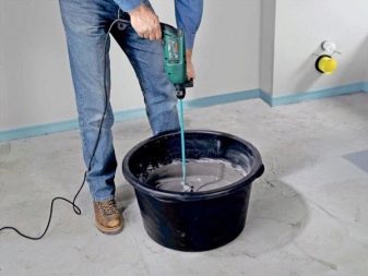Температурата на течността трябва да бъде стайна температура. Първо поставете вода в контейнера и след това добавете суха замазка. С помощта на дюза разбъркайте добре материала. След това ще трябва да изчакате известно време (от пет до петнадесет минути): всеки компонент от разтвора в крайна сметка трябва да се накисне в течност. След като се уверите в това, вземете отново миксера и разбъркайте добре материала..