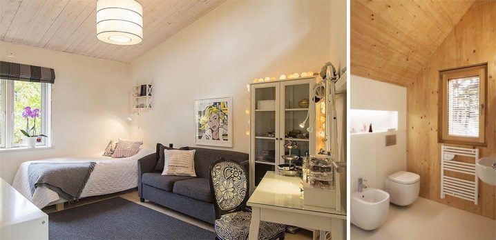 За облицоване на дървена къща първо се монтира дървена или метална рамка и към нея се прикрепва конструкция, след което всеки дизайн може да бъде изпълнен в стаята.