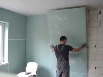 Стените от глина, тухли и бетон също са покрити с гипсокартон. За покриване на основите в банята и в кухнята се използват влагоустойчиви листове, тъй като материалът ще бъде повлиян отрицателно от влагата. Гипсокартонът е подходящ и за облицовка на стени на тоалетна, балкон, лоджии. Може да се поставя както върху плочки, така и върху декоративно довършване с други материали.. В същото време трябва да се оставят малки празнини от 5 см между повърхността на тавана и пода, това ще подобри вентилацията и ще предотврати деформация на листове, които могат да се свият.