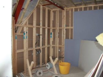 Рамката, върху която са прикрепени листове от гипсокартон, може да бъде метална или дървена. Този метод за изравняване е подходящ за повърхности с несъвършенства не повече от 20 мм. Ако неравностите и размерите на дефектите са големи, тогава първо стените се замазват и едва след това се полагат листове от материал.