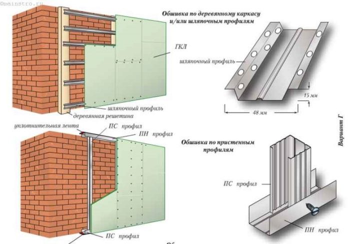 Преди да започнете монтажните работи, е необходимо да изберете подходящия метод за инсталиране на гипсокартон, тъй като той зависи не само от вида на покритието, но и от характеристиките на неподвижния под, както и от условията на работа на бъдещата конструкция. По правило стените от дърво, тухли и стоманобетон са облицовани с материал..