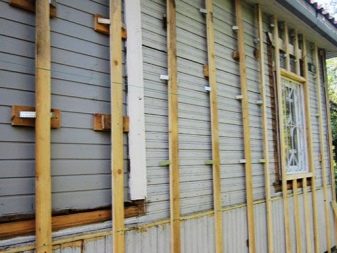 Когато използвате лента, трябва да се има предвид, че нейното съдържание на влага не трябва да надвишава 14%. Това изискване се дължи на факта, че по време на процеса на сушене материалът ще промени формата си и цялата декоративна повърхност може да се деформира. В този случай метален профил е по -предпочитан поради високите си експлоатационни характеристики и голямото разнообразие от стандартни размери. Конструктивните елементи на решетката трябва да бъдат разположени един от друг на разстояние от 40 см до 1 метър. Размерът на стъпалото се избира индивидуално и зависи от височината на къщата, ширината на изолационните плочи и климата. Така че, ако сградата се намира в район с чести ветрове, тогава разстоянията между съседните елементи на решетката трябва да бъдат намалени, което ще осигури общата здравина на конструкцията и ще изключи ветровитостта на металните панели. В зоните, разположени до отворите на вратите и прозорците, също се препоръчва да се намали разстоянието между профилните водачи..