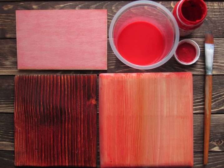 Плътността на цветовете директно зависи от броя на слоевете. Следователно петното на водна основа повдига външното зърно на дървото по време на боядисването след това е необходимо задължително смилане. Ако продуктите от дърво са на открито, тогава за допълнителна защита се препоръчва покриването на горната част с прозрачен лак.