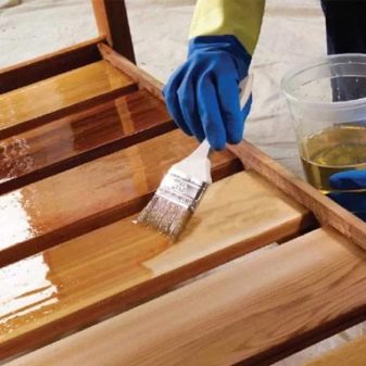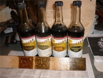 Има два вида петна. Първата група е водоразтворима-може да се продава като готов разтвор или под формата на прах. Петната от вода са безопасни – те могат безопасно да се използват за обработка на детски мебели. Те нямат остра неприятна миризма, проникват дълбоко в текстурата на дървото, отличават се с ниска цена и могат да бъдат направени независимо..