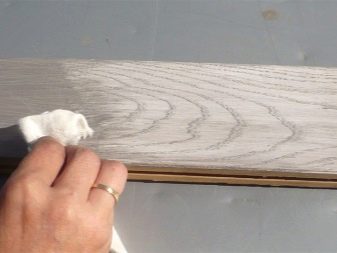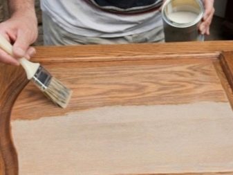 Мебелите от бяло дърво изглеждат интересни. Вместо да го оцветявате, можете да го избелите с петно, за което по-добре е да закупите готов бял състав от производителя. Най -често се среща в маслена основа, но може да се намери и на водна основа. Петното запушва порите, като по този начин озарява дървото, като същевременно не оцветява самия модел.