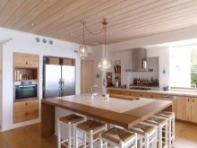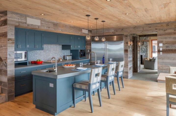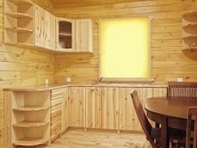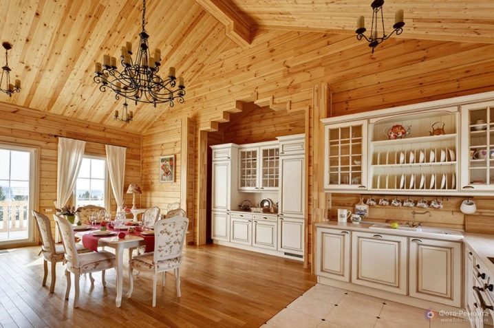 За да бъде кухнята не само практична, но и стилна, препоръчваме да вземете предвид някои от нюансите при декорирането на интериора. Например, в случай, че стаята е изцяло обшита с дъска, тоест стените и тавана, трябва да направите ярък акцент върху мебелите, да изберете ярък бюфет, завеси и т.н..