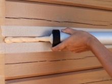 - Самият етап на нанасяне на уплътнителя. Важно е да запомните, че ако повърхността е под ъгъл или е вертикална, тогава шевът се запълва отдолу. Нанесете сместа постепенно и се опитайте да запълните равномерно цялото пространство..