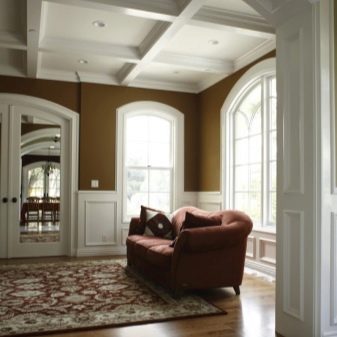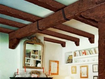 В частни къщи или в летни вили дървото се използва по -често за украса на греди. Той не само създава усещане за топлина, но и служи като завеса за вентилация и електрически проводници..