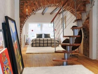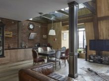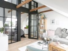 Много често за създаване на интериор в любимия от много съвременни тавански стил използвайте изложени железни греди за разделяне на стаята на различни зони. Те могат да бъдат украсени с чул или да бъдат направени под формата на решетка..