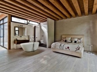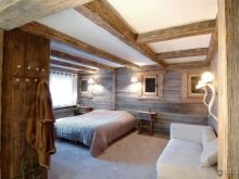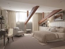 Ако вземете спалня, разположена на тавана, тогава таванът с дървени греди е подходящ за украсата му по най -добрия начин. В крайна сметка те не са толкова декоративни елементи, колкото носещи продукти, които да поддържат рамката на сградата..