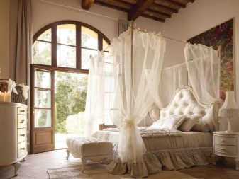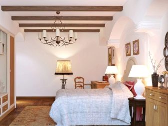 Но за проектирането на обикновени спални тяхното използване се използва рядко. Такива дизайни са по -често срещани в европейските страни. Въпреки това, ако височината на стените в стаята ви позволява да направите декор под формата на греди, тогава не трябва да пренебрегвате тази възможност. Те ще добавят уют и топлина към интериора на спалнята..