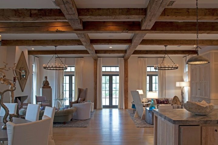 Използвайки декоративни греди за интериора на стаята, не забравяйте да обърнете внимание за коя стая са предназначени.