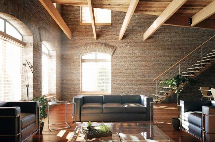 В тази посока често се използват такива техники като демонстративно оставени недовършени комуникации или декорация. Основният материал за подовете е метал. С помощта на такива греди е възможно да се раздели стаята на няколко зони и да се инсталира осветление върху тях..