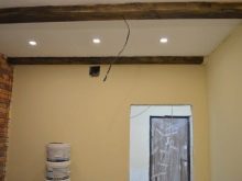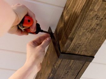 Те са фиксирани в основата на тавана, който след това се опъва така, че основата му да минава по долната равнина на гредата. И едва след това, през опънатия таван, те са прикрепени към гредите. За декорация можете да вземете конзоли, които имитират опорите по стените..