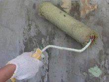 - По -добре е почистената стена да се покрие с грунд, така че мазилката да залепне по -добре към повърхността. Грундът се избира, като се вземе предвид материалът на стенното покритие (бетон, дърво, тухла или стар слой мазилка). Също така грундът помага за укрепване на мазилката и отблъсква излишната влага. За да го приложите, можете да използвате обикновена четка, валяк или пистолет за пръскане..