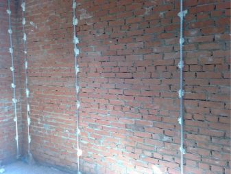 - Тухлените стени трябва да бъдат предварително навлажнени с вода. Това ще помогне на сместа да се прилепне по -добре към тухлата..
