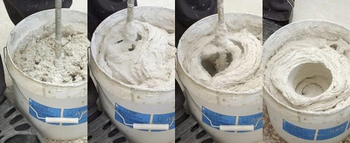 - Пастообразният разтвор трябва да се смеси в такова количество, че да е достатъчно за един час работа. Ако направите голям обем мазилка наведнъж, сместа ще се сгъсти преди края на процеса..