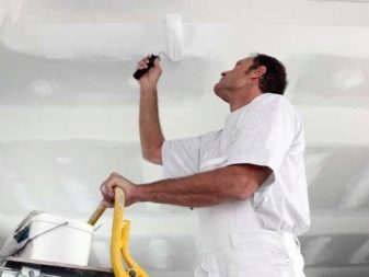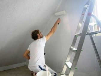 Таванът в два слоя е грундиран с ролка на дълга дръжка, за да покрие цялата площ, без да премества стълбата или стола. Необходимо е да изчислите силата си, тъй като цялата работа се извършва с вдигнати ръце. Правете чести почивки за почивка.
