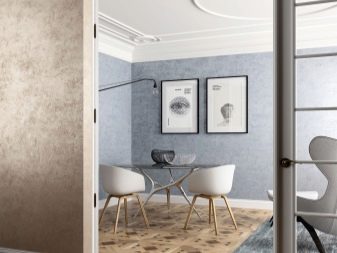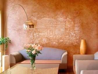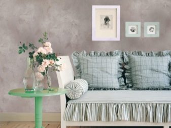За да украсите стени във всяка стая, трябва да вземете предвид цялостния дизайн на стаята. Ако сте избрали класически дизайн, тогава ще ви подхожда смес, имитираща кадифе или коприна. Можете да изберете лаково покритие в перлен нюанс, което добавя лукс и елегантност. Декоративната мазилка най -често се използва за визуално разширяване на пространството..