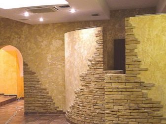 Венецианската декорация е широко използвана, тъй като благодарение на него се постига ефектът от полиран естествен камък. Повърхността ще наподобява мрамор, варовик или малахит, което изглежда много красиво. Този материал се предлага на приятна цена и ако по -рано само богати хора са могли да купуват такива продукти, днес той е достъпен за всички. Комбинацията от изкуствен камък с мазилка ще изглежда интересно в интериора – ако искате да създадете уникален образ, изберете тази опция.